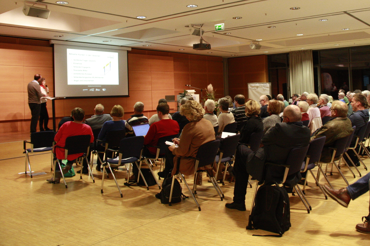 „Wer jetzt in seinem Verein nicht die richtigen Weichen stellt“, meinte auch Prof. Dr. Ronald Wadsack in seinem Referat „Digitalisierungsnebel?“, „verpasst leicht den Anschluss.“ Er zeigte auf, wie ein Vereinsmitglied schon heute digital vor und während seiner Mitgliedschaft begleitet werden kann: Beginnend mit Informationen des Vereins auf der Homepage über die Online-Beitrittserklärung bis hin zu digitaler Vernetzung und Trainingsunterstützung als Angebotsteilnehmer. Insgesamt, so sein Eindruck, haben auch die Sportverbände die Dringlichkeit des Themas erkannt, befinden sich aber in ganz unterschiedlichen Entwicklungsstadien. Begrenzender Faktor ist oftmals das fehlende Knowhow und die finanziellen Mittel. Anzustreben ist die übergreifende digitale Vernetzung von Vereinen, Verbänden und Kommunen, um den Datenerfassungsaufwand gering zu halten und so echte Erleichterungen zu schaffen. Er sieht die Vereinsführung in der Verantwortung und vor der großen Herausforderung, mit Weitsicht den Verein zukunftsfähig aufzustellen und dabei auch die Digitalisierung zu nutzen. Daten stellen die Grundlage der Digitalisierung überhaupt dar, daher müssen die „3 D’s“: Datenschutz, Datensicherheit (Schutz vor Datenverlust) und Datenaktualität größte Beachtung finden. Abschließend riet Wadsack, sich mit Optimismus gegenüber Neuem, etwas Mut und einer fruchtbaren Fehlerkultur den Herausforderungen der Digitalisierung zu stellen.